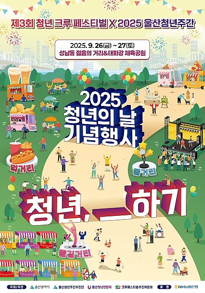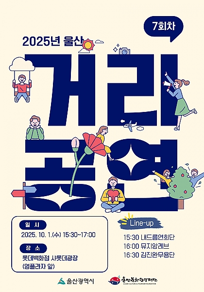 행사·축제 공연 종류 전체 공연 전시 교육·체험 행사·축제 기타 구·군 선택 전체 남구 중구 동구 북구 울주군 동 선택 전체 공연 장소 전체 울주문화원서울주문화센터불고기팜농어촌테마공원갤러리카페래예술가의 집광주광역시 일대지앤 갤러리부산대학교 예술관 무용홀부산국제연극제범서생활체육공원갤러리미지갤러리지앤 기간 검색 검색어 행사명 장소명 검색 전체 중구 남구 동구 북구 울주군 전체 100 건 / 현재 2 페이지 종료 2025년 울산거리공연 8회차 기간 2025-10-11 ~ 2025-10-11 장소 울산대공원 sk 광장 문의 052-255-1911 종료 2025년 울산거리공연 7회차 기간 2025-10-01 ~ 2025-10-01 장소 롯데백화점 광장 문의 052-255-1911 종료 2025 청년의 날 기념행사 제3회 청년크루페스티벌X2025 울산청년주간 기간 2025-09-26 ~ 2025-09-27 장소 태화강체육공원 종료 제 7회 울산비보이페스티벌 기간 2025-10-18 ~ 2025-10-18 장소 강동중앙공원 문의 saup@ksilbo.co.kr, 052-220-0613, 052-220-0612 종료 울산 야외도서관 '소풍' 기간 2025-09-13 ~ 2025-10-12 장소 태화강 국가정원 종료 제14회 우시산국 축제 기간 2025-09-19 ~ 2025-09-20 장소 웅촌운동장 문의 052-204-4033 종료 2025년 「독서의 달」 행사 운영 기간 2025-09-07 ~ 2025-09-30 장소 울산도서관 문의 ulsanlib@korea.kr, 052-229-6902 종료 2025년 울산거리공연 6회차 기간 2025-09-13 ~ 2025-09-13 장소 울산공항 문의 052-255-1913 1 2 3 4 5 다음 끝