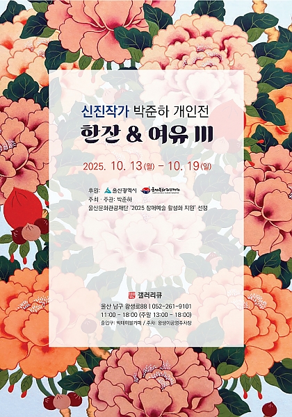 전체 공연 종류 전체 공연 전시 교육·체험 행사·축제 기타 구·군 선택 전체 남구 중구 동구 북구 울주군 동 선택 전체 공연 장소 전체 울주문화원서울주문화센터불고기팜농어촌테마공원갤러리카페래예술가의 집광주광역시 일대지앤 갤러리부산대학교 예술관 무용홀부산국제연극제범서생활체육공원갤러리미지갤러리지앤 기간 검색 검색어 행사명 장소명 검색 전체 중구 남구 동구 북구 울주군 전체 2,248 건 / 현재 22 페이지 종료 울산 야외도서관 '소풍' 기간 2025-09-13 ~ 2025-10-12 장소 태화강 국가정원 종료 Layers 기간 2025-09-17 ~ 2025-09-25 장소 북구예술창작소 소금나루2014 문의 bukguart@naver.com, 052-289-8169 종료 소프라노 성은혜의 두 번째 이야기 <사랑 그리고 꿈> 기간 2025-10-11 ~ 2025-10-11 장소 중구문화의전당 문의 010-7726-1918 종료 All That Baroque 기간 2025-09-03 ~ 2025-09-03 장소 울산 중구문화의 전당 종료 Art into the Public 기간 2025-09-09 ~ 2025-09-14 장소 독립대안문회공간 비모어 문의 052-911-1015 종료 <방향> 김옥희 개인전 기간 2025-09-24 ~ 2025-09-30 장소 울산남구문화원 갤러리 숲 종료 신진작가 박준하 개인전 <한잔 & 여유 Ⅲ> 기간 2025-10-13 ~ 2025-10-19 장소 갤러리큐 문의 mocca12@kakao.com, 052-261-9101 종료 청소년힐링소통프로젝트, 뮤직콘서트 기간 2025-10-11 ~ 2025-10-11 장소 장생포문화창고 문의 052-226-0013 처음 이전 21 22 23 24 25 다음 끝