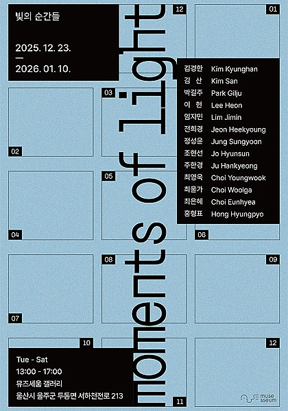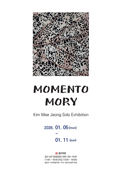 전시 공연 종류 전체 공연 전시 교육·체험 행사·축제 기타 구·군 선택 전체 남구 중구 동구 북구 울주군 동 선택 전체 공연 장소 전체 울주문화원서울주문화센터불고기팜농어촌테마공원갤러리카페래예술가의 집광주광역시 일대지앤 갤러리부산대학교 예술관 무용홀부산국제연극제범서생활체육공원갤러리미지갤러리지앤Fe01 재생복합문화공간 기간 검색 검색어 행사명 장소명 검색 전체 중구 남구 동구 북구 울주군 전체 648 건 / 현재 5 페이지 종료 울산여행스케치 <만남의 선, 여행의 색> 기간 2025-12-24 ~ 2025-12-28 장소 아트스페이스그루 문의 artspace_g-ru@naver.com, 010-5127-1701 종료 여섯 번째 감성전: 선물 기간 2025-12-31 ~ 2025-01-05 장소 울산문화예술회관 전시장 종료 김윤아 개인전 기간 2025-12-30 ~ 2026-01-10 장소 월플러스 문의 miso68@naver.com, 010-3604-7045 종료 이지연의 감각의 본질 기간 2025-12-23 ~ 2026-01-11 장소 갤러리 지앤 문의 dokki0717@hanmail.net, 052-261-7276 종료 별주부전-바다속이야기 기간 2025-12-20 ~ 2026-02-01 장소 슬도아트 종료 빛의 순간들 기간 2025-12-23 ~ 2026-01-10 장소 뮤즈세움갤러리 문의 musesseum@gmail.com 종료 <색깔로 그린 동화> 그림 그리는 아이 친구들 기간 2026-01-19 ~ 2026-01-24 장소 갤러리큐 문의 mocca12@kakao.com, 052-261-9101 종료 <MOMENTO MORY> 김미정 개인전 기간 2026-01-05 ~ 2026-01-11 장소 갤러리큐 문의 mocca12@kakao.com, 052-261-9101 1 2 3 4 5 다음 끝