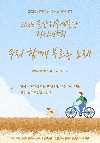 공연 공연 종류 전체 공연 전시 교육·체험 행사·축제 기타 구·군 선택 전체 남구 중구 동구 북구 울주군 동 선택 전체 공연 장소 전체 울주문화원서울주문화센터불고기팜농어촌테마공원갤러리카페래예술가의 집광주광역시 일대지앤 갤러리부산대학교 예술관 무용홀부산국제연극제범서생활체육공원갤러리미지갤러리지앤 기간 검색 검색어 행사명 장소명 검색 전체 중구 남구 동구 북구 울주군 전체 1,299 건 / 현재 6 페이지 종료 2025 울산리플예술단 정기연주회<우리 함께 부르는 노래> 기간 2025-11-18 ~ 2025-11-18 장소 울산 북구 문화예술회관 문의 ulsanmh17@naver.com, 010-2859-5454 종료 '운율' 첫 단독 콘서트 기간 2025-12-06 ~ 2025-12-06 장소 플러그인 문의 stitch_sy@naver.com, 010-9515-7763 종료 <울산여행> 2025 더에임 챔버오케스트라 정기연주회 기간 2025-11-21 ~ 2025-11-21 장소 울산문화예술회관 소공연장 문의 070-4451-2690, 010-2333-4780 종료 최백호 전국투어 콘서트 <낭만에 대하여> - 울산 기간 2025-11-23 ~ 2025-11-23 장소 울산문화예술회관 대공연장 문의 1811-8202 종료 Origin of Steel [철의 기원] 기간 2025-11-05 ~ 2025-11-05 장소 아트홀 마당 종료 제1회 김수현 독주회 '현율' 기간 2025-11-08 ~ 2025-11-08 장소 플러그인 종료 껄껄껄 연희상조 기간 2025-12-05 ~ 2025-12-06 장소 꽃바위 문화관 문의 052-209-4330 종료 변유진 네번째 첼로 독주회 기간 2025-11-15 ~ 2025-11-15 장소 울산문화예술회관 소공연장 문의 cellistjin@gmail.com, 010-7595-1216 처음 이전 6 7 8 9 10 다음 끝