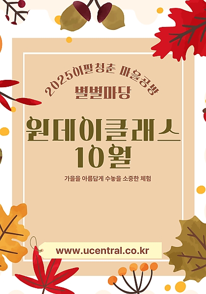 교육·체험 공연 종류 전체 공연 전시 교육·체험 행사·축제 기타 구·군 선택 전체 남구 중구 동구 북구 울주군 동 선택 전체 공연 장소 전체 울주문화원서울주문화센터불고기팜농어촌테마공원갤러리카페래예술가의 집광주광역시 일대지앤 갤러리부산대학교 예술관 무용홀부산국제연극제범서생활체육공원갤러리미지갤러리지앤 기간 검색 검색어 행사명 장소명 검색 전체 중구 남구 동구 북구 울주군 전체 349 건 / 현재 1 페이지 5일 후 종료 10월 원데이클래스 기간 2025-10-09 ~ 2025-10-28 장소 이팔청춘마을공방별별마당 문의 ykyk1701@naver.com, 050713022886 1달 후 종료 [문학 프로그램] 유유자적 문학산책 기간 2025-10-16 ~ 2025-12-18 장소 장생포 아트스테이 문의 052-276-9674 4달 후 종료 얼굴 쓱, 마음 톡 기간 2025-09-25 ~ 2026-03-08 장소 울산시립미술관 문의 052-229-8443 2일 후 종료 <북 바인딩 클래스> 기간 2025-10-16 ~ 2025-10-25 장소 중구생활문화센터 1달 후 종료 꿈다락문화예술학교 [조선판타지:그림과 소리의 시간여행] 기간 2025-09-17 ~ 2025-11-26 장소 북구예술창작소 감성갱도2020 문의 010-8828-0456 7일 후 종료 달달한 목요 인문학 <지구·기후 그리고 인공지능> 기간 2025-10-16 ~ 2025-10-30 장소 울산동구평생학습관 문의 052-209-3234 1달 후 종료 옥현어린이도서관 2025년 하반기 독서문화프로그램 기간 2025-09-21 ~ 2025-12-14 장소 옥현어린이도서관 1달 후 종료 [울산도서관] 2025년 하반기 독서문화프로그램 기간 2025-09-19 ~ 2025-11-23 장소 울산도서관 문의 052-229-6905 1 2 3 4 5 다음 끝