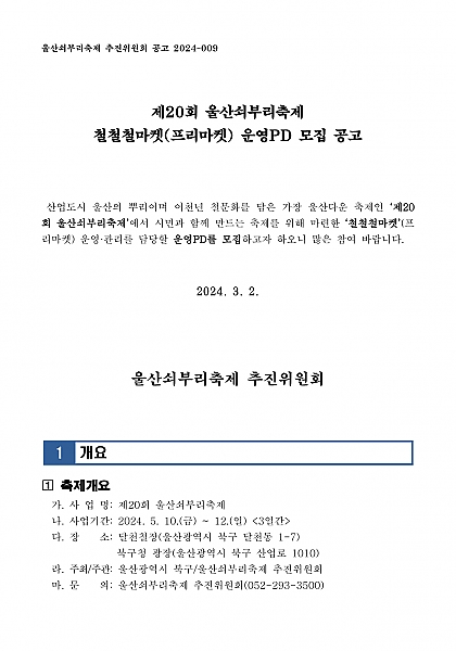 - 39 제20회 울산쇠부리축제 철철철마켓(프리마켓) 운영PD 모집 공고