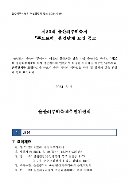 - 40 제20회 울산쇠부리축제 「푸드트럭」운영단체 모집 공고