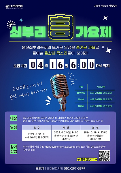 - 42 제20회 울산쇠부리축제「쇠부리 ‘흥’ 가요제」 참가자(개인/단체) 모집 공고