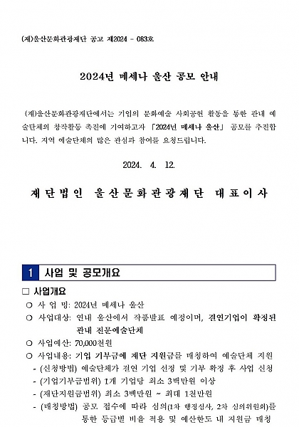 - 47 2024년 메세나 울산 공모 안내