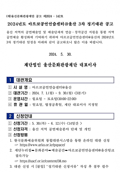 - 48 2024년 아르코공연연습센터@울산 3차 정기대관 공고