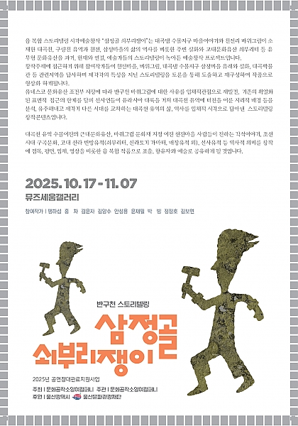 전체 공연 종류 전체 공연 전시 교육·체험 행사·축제 기타 구·군 선택 전체 남구 중구 동구 북구 울주군 동 선택 전체 공연 장소 전체 울주문화원서울주문화센터불고기팜농어촌테마공원갤러리카페래예술가의 집광주광역시 일대지앤 갤러리부산대학교 예술관 무용홀부산국제연극제범서생활체육공원갤러리미지갤러리지앤 기간 검색 검색어 행사명 장소명 검색 전체 중구 남구 동구 북구 울주군 전체 2,210 건 / 현재 1 페이지 21일 후 종료 반구천 스토리텔링 - 삼정골 쇠부리쟁이 기간 2025-10-17 ~ 2025-11-07 장소 뮤즈세움갤러리 문의 kooshkoosh@naver.com, 010-3129-5126 2일 후 종료 공존의 서사: 이런 삶 기간 2025-10-14 ~ 2025-10-19 장소 가기갤러리 문의 010-2693-2090 9일 후 종료 이완승 개인전 기간 2025-10-17 ~ 2025-10-26 장소 아트스페이스그루 문의 010-3885-9210 11일 후 종료 시간의 흔적 기간 2025-10-14 ~ 2025-10-28 장소 독립대안문회공간 비모어 29일 후 종료 기후예술프로젝트 불균형한 공존 기간 2025-10-15 ~ 2025-11-15 장소 ART CENTER SIRI (아트센터 시리) 문의 kooshkoosh@naver.com, 010-3129-5126, 010-4732-0091 8일 후 종료 붉은착륙지 기간 2025-10-17 ~ 2025-10-25 장소 북구예술창작소 소금나루2014 문의 bukguart@naver.com, 052-289-8169 17일 후 종료 레지던시 결과보고전 <Trace of Trace : 흔적의 흔적> 기간 2025-10-14 ~ 2025-11-03 장소 창작스튜디오 장생포고래로 131 11일 후 종료 김유경 개인전 <Ink Cell> 기간 2025-09-29 ~ 2025-10-28 장소 갤러리 지앤 문의 052-261-7276 1 2 3 4 5 다음 끝