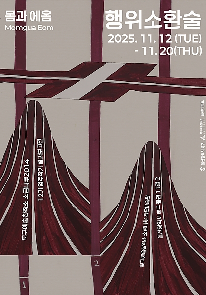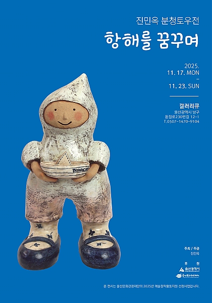 전시 공연 종류 전체 공연 전시 교육·체험 행사·축제 기타 구·군 선택 전체 남구 중구 동구 북구 울주군 동 선택 전체 공연 장소 전체 울주문화원서울주문화센터불고기팜농어촌테마공원갤러리카페래예술가의 집광주광역시 일대지앤 갤러리부산대학교 예술관 무용홀부산국제연극제범서생활체육공원갤러리미지갤러리지앤 기간 검색 검색어 행사명 장소명 검색 전체 중구 남구 동구 북구 울주군 전체 596 건 / 현재 5 페이지 종료 일상에서 발견한 특별한 순간 기간 2025-11-19 ~ 2025-11-25 장소 아리오소 갤러리 종료 김필순개인전_CHANNEL 기간 2025-11-17 ~ 2025-11-23 장소 아트스페이스그루 문의 010-4545-9286 종료 한지 ~~꽃 피우다 기간 2025-11-17 ~ 2025-11-28 장소 웅촌문화복지센터전시장 문의 010-8938-3317 종료 <항해를 꿈꾸며> 진민옥 분청토우전 기간 2025-11-17 ~ 2025-11-23 장소 갤러리큐 문의 mocca12@kakao.com, 052-261-9101 종료 행위 소환술 기간 2025-11-12 ~ 2025-11-20 장소 북구예술창작소 소금나루2014 문의 bukguart@naver.com, 052-289-8169 종료 <맘마미아! 얼떨결에 민화 전시회> 김미연 류빈 김란주 기간 2025-11-10 ~ 2025-11-15 장소 갤러리큐 문의 mocca12@kakao.com, 052-261-9101 종료 이끼숲에서 우주를 보다 기간 2025-11-04 ~ 2025-11-11 장소 월플러스 종료 진주영 개인전 <아주 작은 것의 현상> 기간 2025-11-13 ~ 2025-12-03 장소 뮤즈세움갤러리 문의 050714325321 1 2 3 4 5 다음 끝