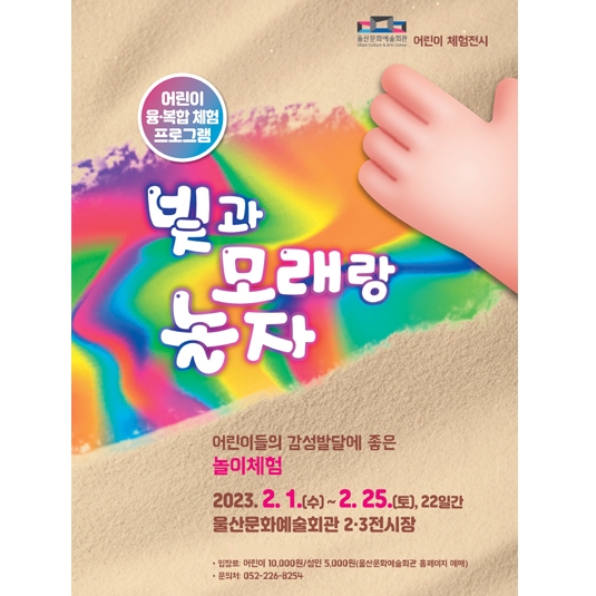전시 공연 종류 전체 공연 전시 교육·체험 행사·축제 기타 구·군 선택 전체 남구 중구 동구 북구 울주군 동 선택 전체 공연 장소 전체 울주문화원서울주문화센터불고기팜농어촌테마공원갤러리카페래예술가의 집광주광역시 일대지앤 갤러리부산대학교 예술관 무용홀부산국제연극제범서생활체육공원갤러리미지 기간 검색 검색어 행사명 장소명 검색 전체 중구 남구 동구 북구 울주군 전체 529 건 / 현재 53 페이지 종료 제1회 이동철 사진전 기간 2023-03-08 ~ 2023-03-13 장소 울산문화예술회관 문의 052-226-8252 종료 백성욱 사진전 기간 2023-03-01 ~ 2023-03-13 장소 울산문화예술회관 문의 052-226-8252 종료 화실리전통회화연구회 민화전 기간 2023-02-22 ~ 2023-02-27 장소 울산문화예술회관 문의 052-226-8252 종료 빛과 모래랑 놀자 기간 2023-02-01 ~ 2023-02-25 장소 울산문화예술회관 문의 052-226-8254 종료 한민족상고사 그림 전시회 기간 2023-02-01 ~ 2023-02-06 장소 울산문화예술회관 문의 052-226-8252 종료 야외등불 서예작품전 기간 2023-01-07 ~ 2023-01-18 장소 울산문화예술회관 문의 052-226-8254 종료 미디어아트 특별기획전시 「빛:의 ROOM 展」 기간 2022-12-16 ~ 2022-12-30 장소 울주문화예술회관 문의 052-980-2270 종료 2023 Gallery Q 열두달 달력전 기간 2022-12-26 ~ 2023-01-07 장소 갤러리큐 문의 mocca12@kakao.com, 052-261-9101 처음 이전 51 52 53 54 55 다음 끝