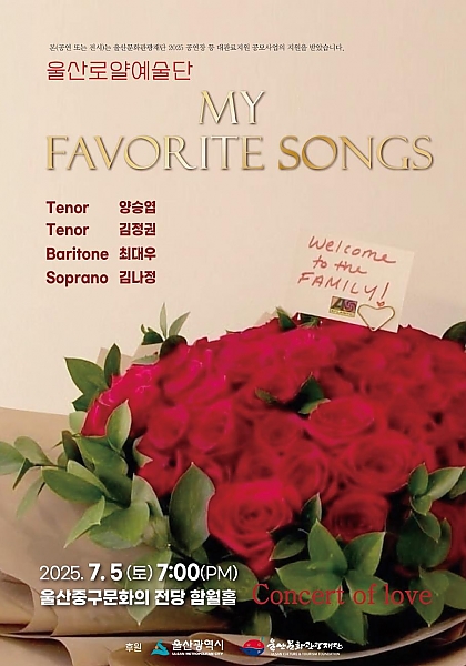 공연 공연 종류 전체 공연 전시 교육·체험 행사·축제 기타 구·군 선택 전체 남구 중구 동구 북구 울주군 동 선택 전체 공연 장소 전체 울주문화원서울주문화센터불고기팜농어촌테마공원갤러리카페래예술가의 집광주광역시 일대지앤 갤러리부산대학교 예술관 무용홀부산국제연극제범서생활체육공원갤러리미지갤러리지앤 기간 검색 검색어 행사명 장소명 검색 전체 중구 남구 동구 북구 울주군 전체 1,296 건 / 현재 8 페이지 종료 [기획공연] 토요시네마 11월 영화 <좀비딸> 기간 2025-11-15 ~ 2025-11-15 장소 온양문화복지센터 종료 시립청소년교향악단 제47회 정기연주회 기간 2025-11-30 ~ 2025-11-30 장소 울산문화예술회관 대공연장 문의 052-275-9623 종료 백설공주 기간 2025-11-14 ~ 2025-11-23 장소 ARTHALL마당 문의 052-269-8034 종료 울산로얄예술단 MY FAVORITE SONGS 기간 2025-07-05 ~ 2025-07-05 장소 울산 중구문화의 전당 종료 바흐&헨델 탄생 340주년 기념 ALL That Baroque 기간 2025-09-03 ~ 2025-09-03 장소 울산 중구문화의 전당 오늘 종료 뉴욕 필하모닉 스트링 콰르텟 내한공연 기간 2025-12-07 ~ 2025-12-07 장소 울산문화예술회관 소공연장 문의 052-226-8296 종료 푸른 달 기간 2025-11-07 ~ 2025-11-07 장소 서울주문화센터 문의 010-9008-6614 종료 울산동구문화원과 함께하는 문화가 있는 날 - 연극 수상한 흥신소 기간 2025-11-08 ~ 2025-11-08 장소 울산동구문화원 문의 052-251-2261 처음 이전 6 7 8 9 10 다음 끝