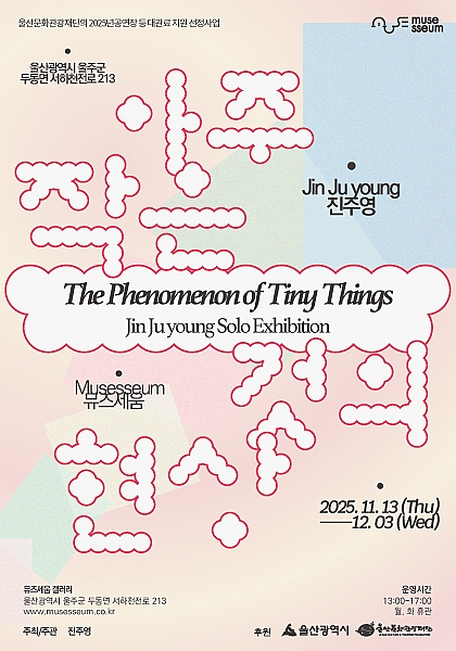전체 42 건 / 현재 3 페이지 나의 예술활동 등록방법 자세히보기 ※ 로그인 후, 나의 예술활동을 등록할 수 있습니다. 김민경 2025-11-12 진행중 안녕,울산아! 제1회 에코아트 전시회 지역 중구 / 옥교동 장소 아트스페이스 그루 기간 2025-11-24 ~ 2025-11-30 이소영 2025-11-10 진행중 '운율' 첫 단독 콘서트 지역 중구 / 옥교동 장소 플러그인 기간 2025-12-06 ~ 2025-12-06 김경선 2025-11-10 진행중 채움 ∞ 비움 지역 중구 / 우정동 장소 한국에너지공단 홍보관 NEXTAGE 기간 2025-12-16 ~ 2025-12-30 정활란 2025-11-10 진행중 한지 ~~꽃 피우다 지역 울주군 / 웅촌면 장소 웅촌문화복지센터전시장 기간 2025-11-17 ~ 2025-11-28 울산암각화박물관 2025-11-06 진행중 암각화공작소 지역 울주군 / 두동면 장소 울산암각화박물관 기간 2025-11-29 ~ 2025-11-29 HD아트센터 2025-11-03 진행중 이탈리안 4 테너스 지역 동구 / 서부동 장소 HD아트센터 기간 2025-12-17 ~ 2025-12-17 HD아트센터 2025-11-03 진행중 뮤지컬 레드북 지역 동구 / 서부동 장소 HD아트센터 기간 2025-12-25 ~ 2025-12-27 진주영 2025-11-01 진행중 진주영 개인전 <아주 작은 것의 현상> 지역 울주군 / 두동면 장소 뮤즈세움갤러리 기간 2025-11-13 ~ 2025-12-03 1 2 3 4 5 다음 끝